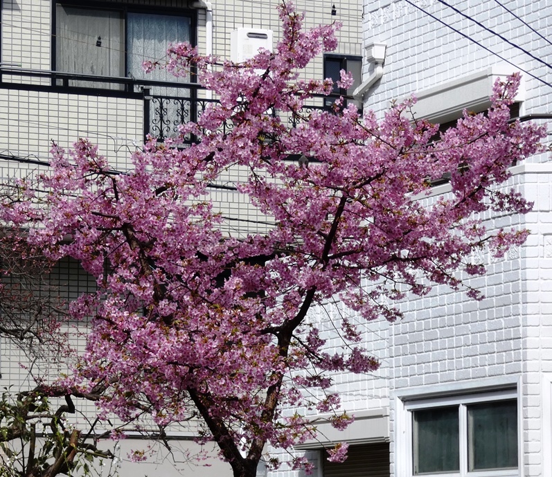 変わってほしくない場所。ニキティキ、4ひきのねこの並びのお屋敷で咲いていた河津桜。