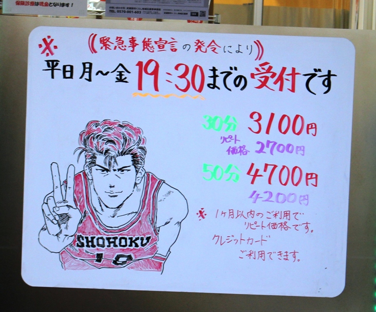 本町整骨院のメッセージボード。今回はスラムダンクです。