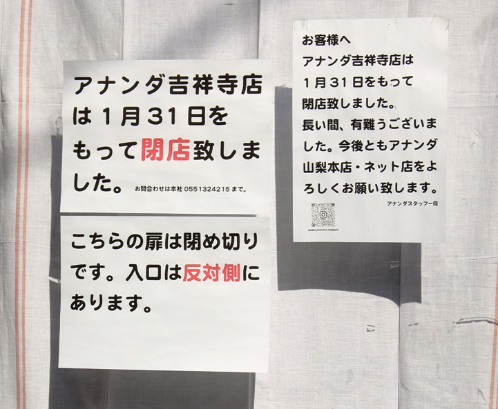 アナンダさん。毛糸とか、編み物用品のお店でしたが、コロナの影響でしょう。閉店してしまいました。