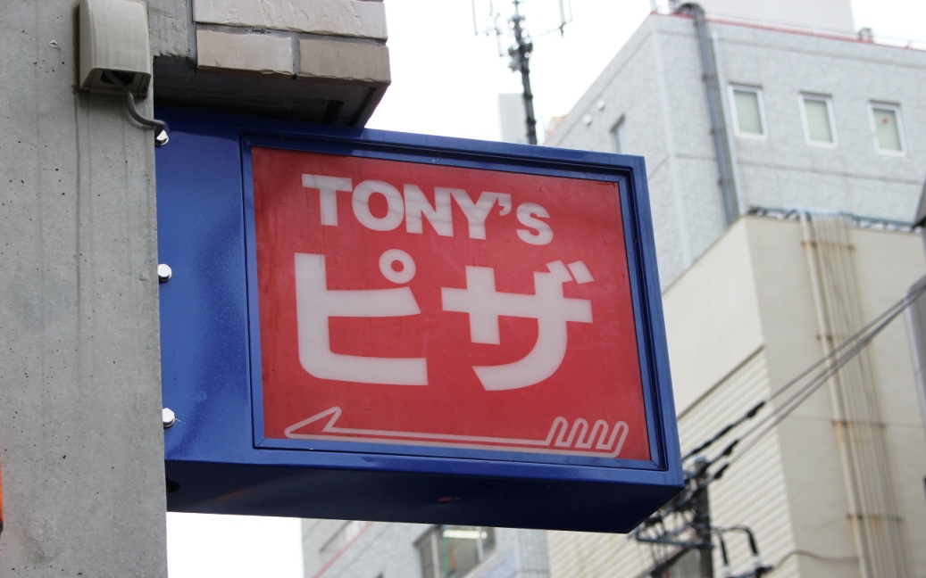 50周年を迎える老舗、Tony'sピザの看板は、何ともシンプルです。僕はこの街にも40年以上いるのに、まだ行ったことがないのです。今度、出かけてみようかな。