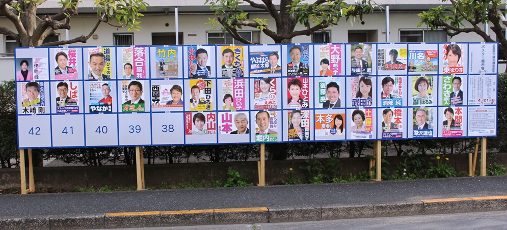 明日は市議会議員選挙の投票日。昔の選挙ポスターの掲示板はポスターの掲示位置がアトランダムに配列されていたのですが、最近のは右上から左下にシリアルにポスターの貼付位置が固定されているんですね。
