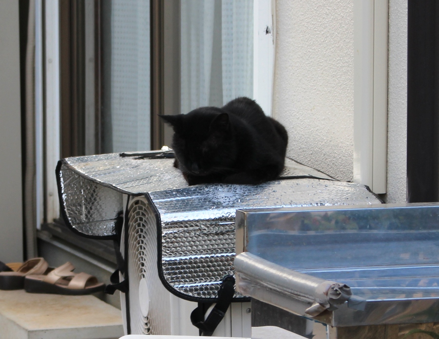 これは立野町にいた黒猫さん。室外機や給湯器の上がこれからはベストポジションになるシーズンです。