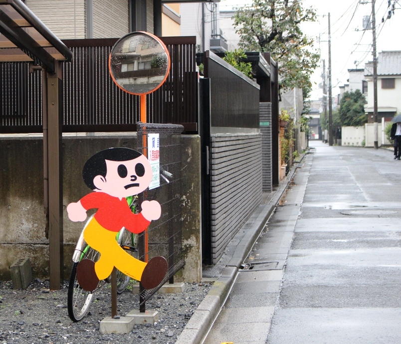 『とびだし注意!!』を言いたい手作りの看板なのでしょうが、逆に自動車の運転者からみると、子供が飛び出してきているように見えて危険です。急減速する人もいるのでは?