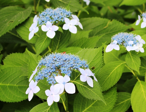 紫陽花は種類も多いですよね。花が外に向くタイプの紫陽花が、すぐ近くで咲き誇っています。