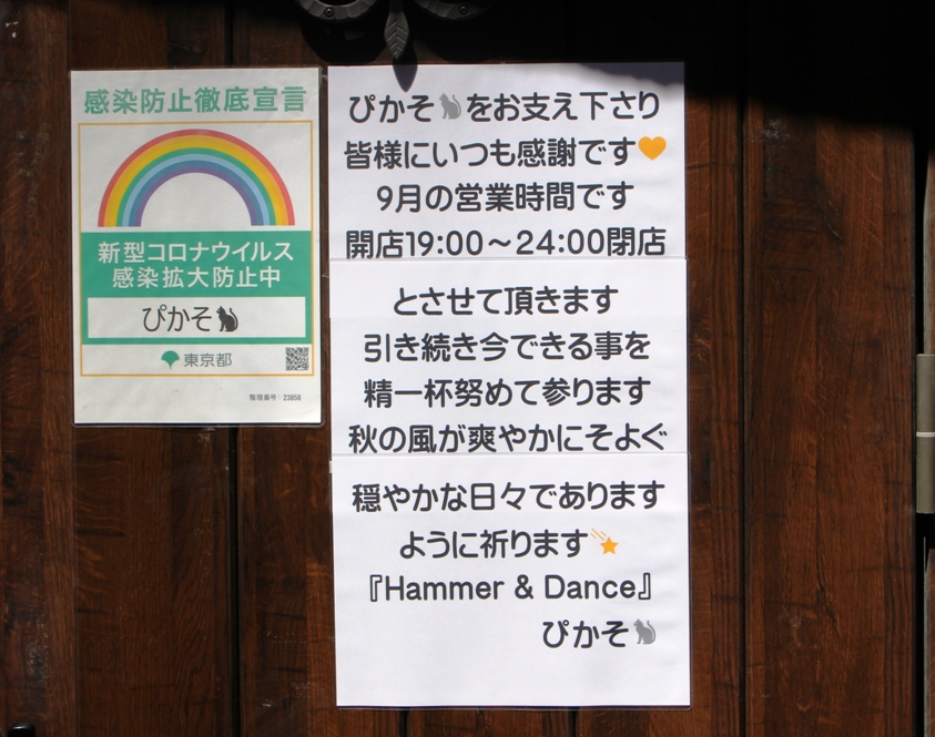『ぴかそ』さん、少し営業時間を延ばしてきました。こんな風にコロナに対峙していくことになりそうです。