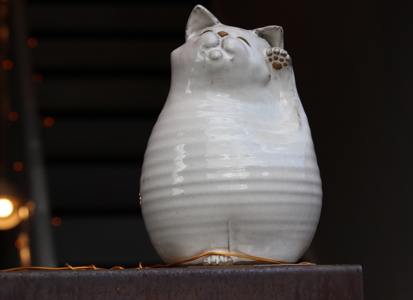 いや可愛い陶器の招き猫さんです。陶芸の作家さんの作品だそうですが、本当に優しく、福福しい。