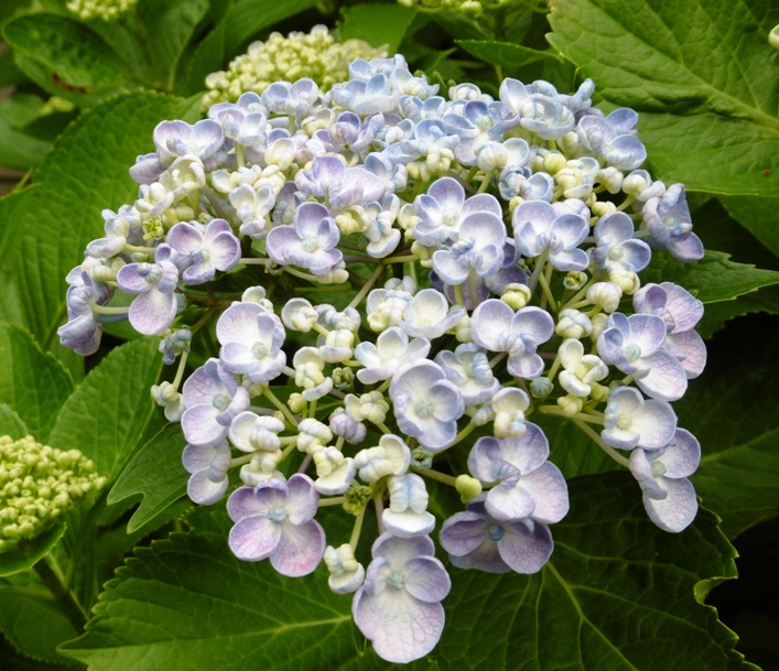 紫陽花が満開の季節になりました。沢山の色合いと型がある花ですけれど、この色合いが王道かなぁ・・・