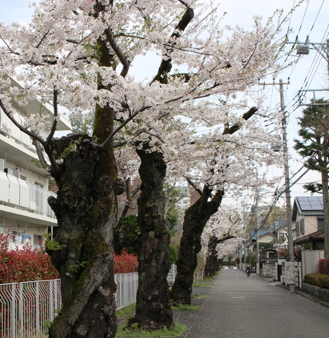 僕が少年時代を過ごした北町の桜並木です。新たに植え替えをした若木も花をつけて、今年も綺麗に咲きそろっていました。