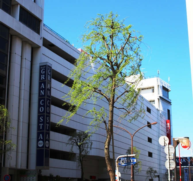 花紅柳緑といいますが、満開だった桜と入れ替わるように緑もみずみずしく、柳の枝が風に吹かれ、青空に溶けています。