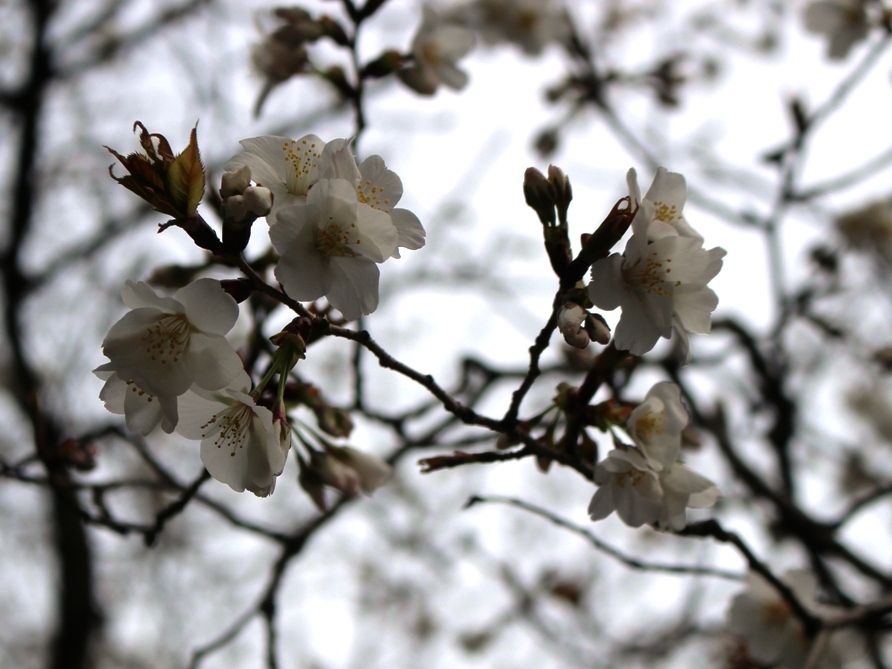 梅と桜が同時に咲いていますよ。特に桜は珍しいヤマザクラのようです。もう綺麗な葉が出ている木もあるようです。