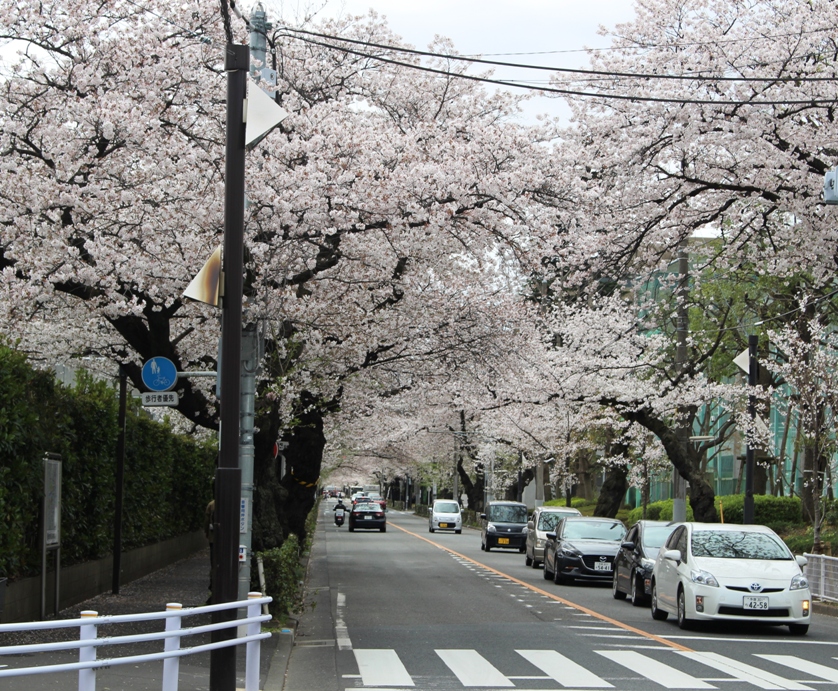 市役所前の満開の桜のトンネル。本来なら桜まつりでうららかな日々の筈なのに。
