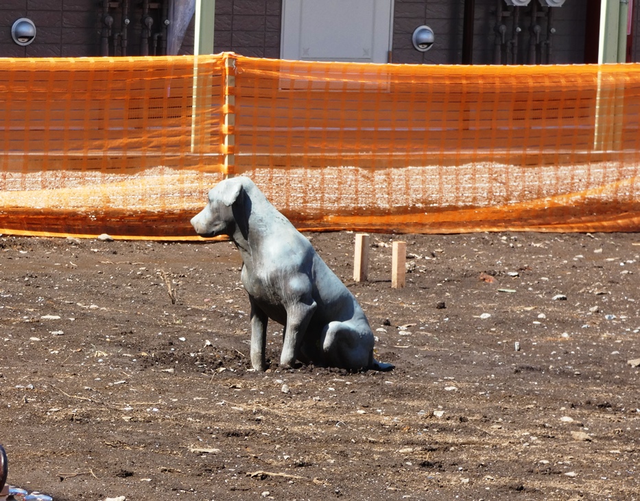 うぐいす小路の更地に、なぜかこの大きな犬のオブジェが置かれていました。