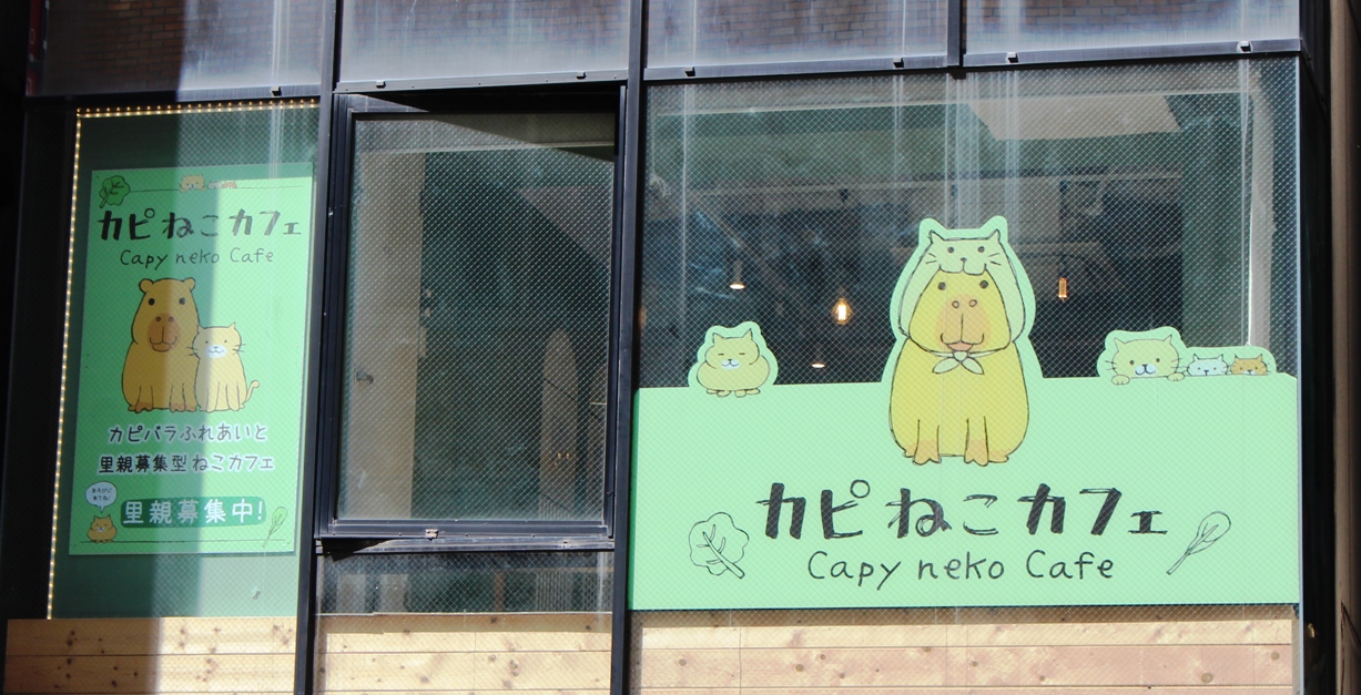 猫カフェやうさぎカフェは判るのですが、爬虫類カフェや梟カフェ、そしてここにはカピバラと触れあえる猫カフェです。