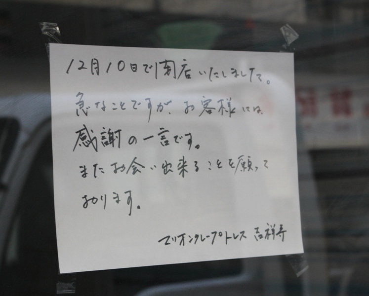 せっかく再会できた、君の好きだったクレープ屋さん。またお別れすることになってしまいました。