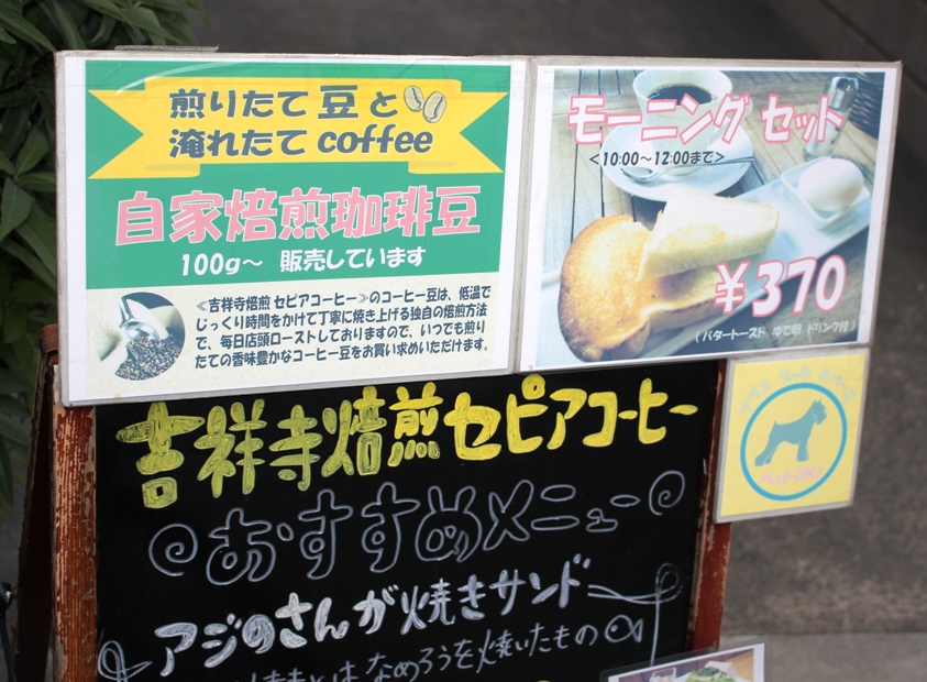 セピアコーヒーさんの看板。これですよ。このモーニングサービスが喫茶店です。