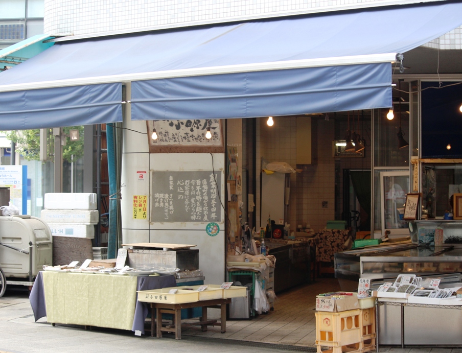 毎年、店頭で焼かれる美味しい烏賊や貝類を買うために大行列ができる魚屋さんも、今年はこんな感じ。
