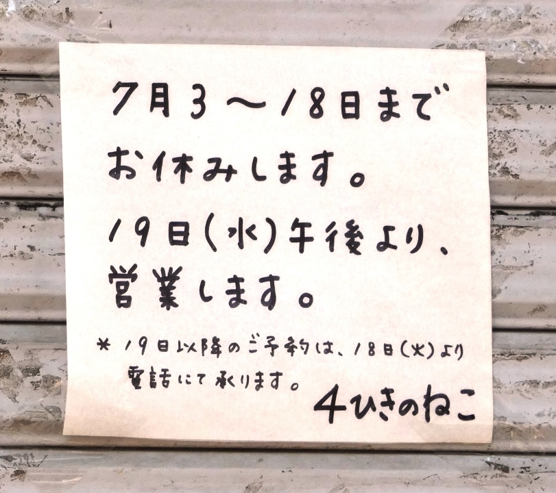 『4ひきのねこ』恒例の夏季休業、第一弾です。また8月にきっと長い休みに入るのでしょうけれど、ねこはゆっくり夏のお休みです。