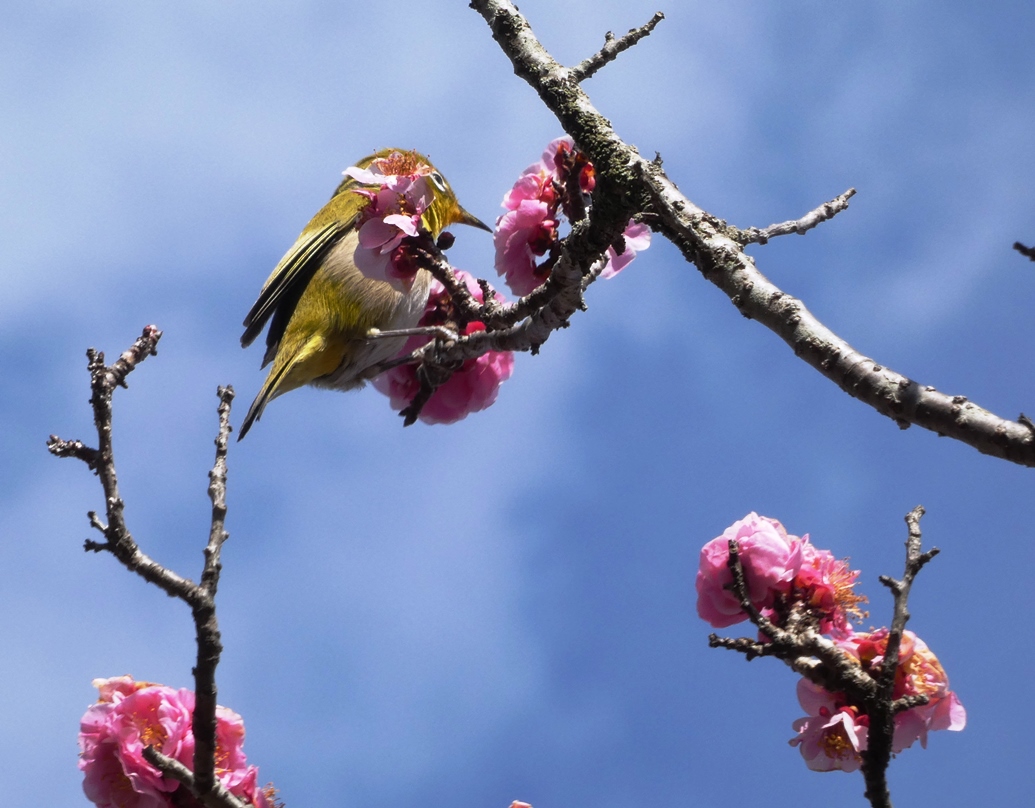 もう梅は散っていて、残り少しの梅の花にとまっていたメジロ君を撮影しました。