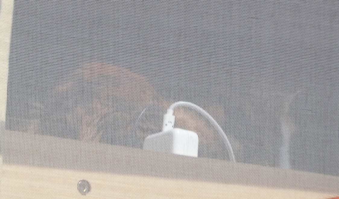 網戸越しで少し見づらいけれど、三毛さんでしょうか。
