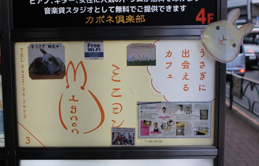 うさぎカフェ。牛込を歩いていて偶然、みつけてしまいましたが、ここはかなり昔からあります。