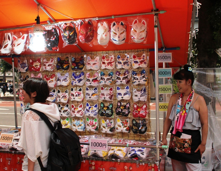 毎年、屋台には流行り廃りがあります。今年は妙にこの狐さんのお面が流行みたいです。