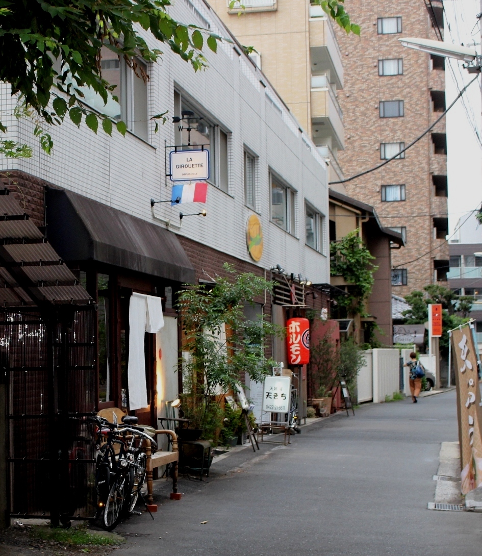 夕暮れの吉祥寺の裏通りです。