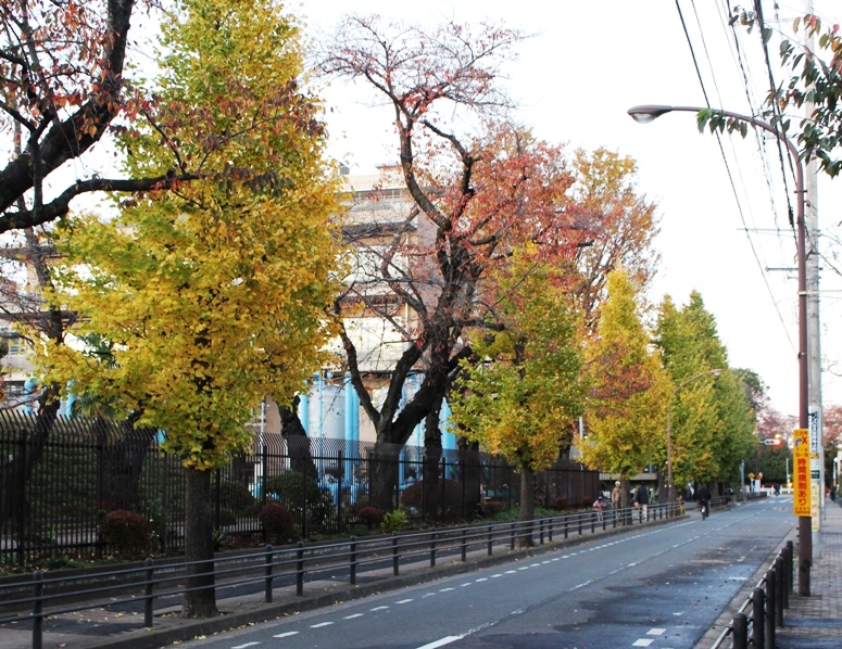 僕の好きな水道局前のイチョウ並木。もっと黄色く色づいているかと思ったら、まだチラホラ緑色が見えています。