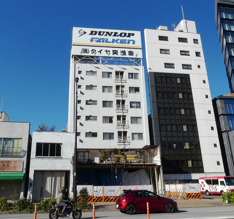 『タイヤ突進舎』中央線から35年以上眺めていたのに、なくなってしまったみたい。