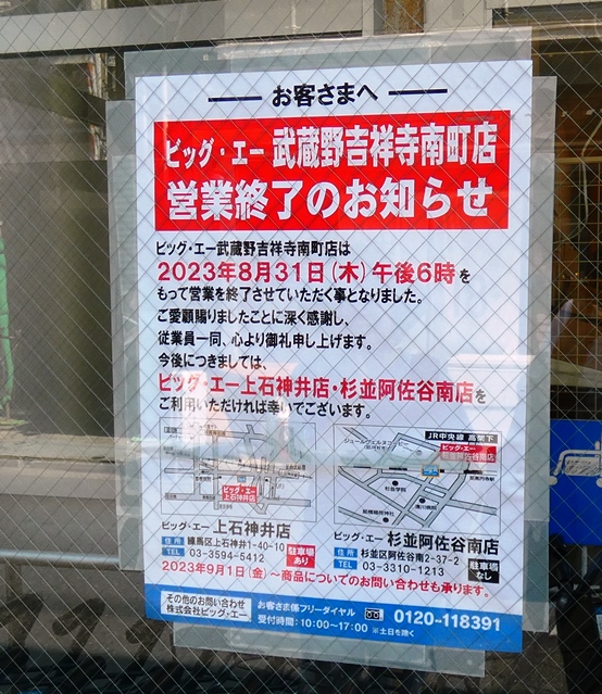 Big‐Aまで閉店です。OKさんに押されたのかなぁ・・・。それなりに便利で重宝していたのに・・・。