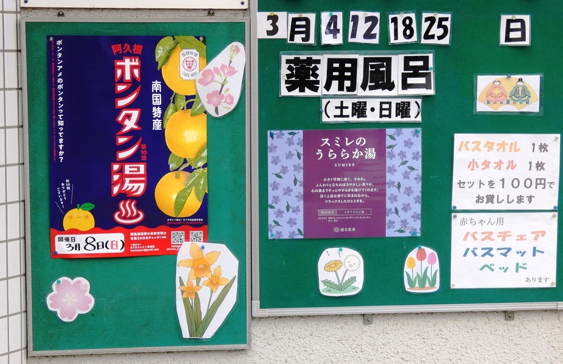 ここも馴染みの光景、ボンタン湯と薬湯が売りみたいです。