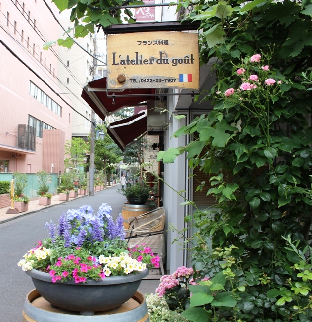 こんな綺麗なレストランの看板と花の鉢がさりげなくあるのが僕たちの好きな街角です。