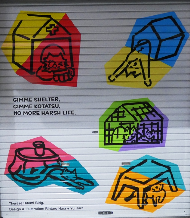 いつもここにはポップアップショップ等が出ているから分からなかったけど、こんな可愛いイラストが入っていたんですね。炬燵は正義です。
