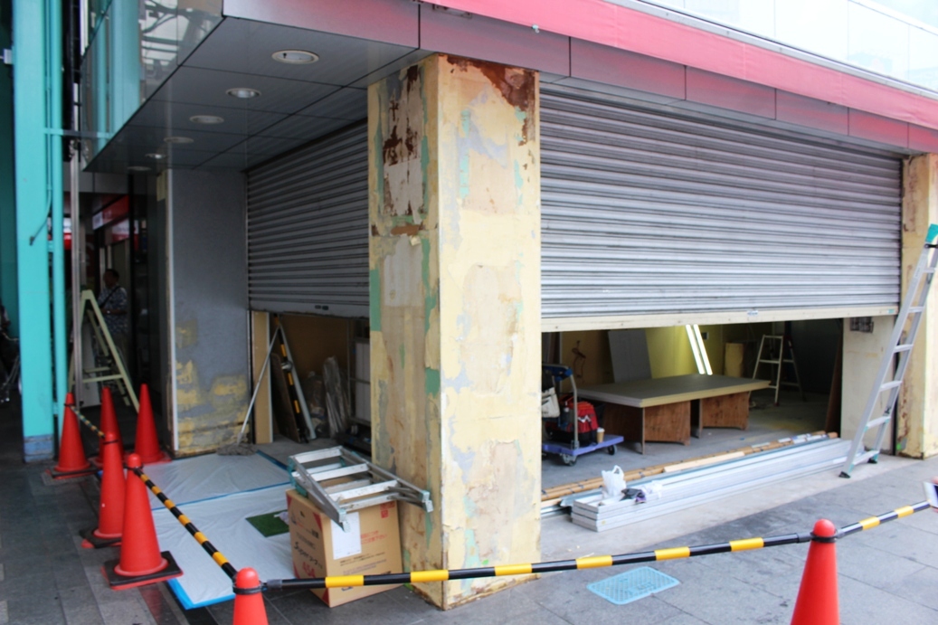 サンロードの入り口にあった『おかしのまちおか』さんの跡地です。