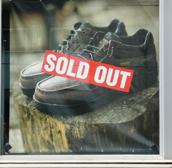 Apartment Kichijojiの2階の窓に大きく出ています。これ本当に履き心地がよさそう。Goretex製品だというから本当に売り切れなのかもしれませんね。