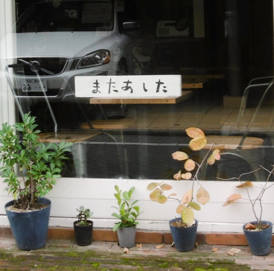 朝の中道通り。喫茶店にこんなプレートがたっていました。『準備中』と素っ気無く、札を立てるより、『またあした』と言ってもらう方が気が利いていますね。