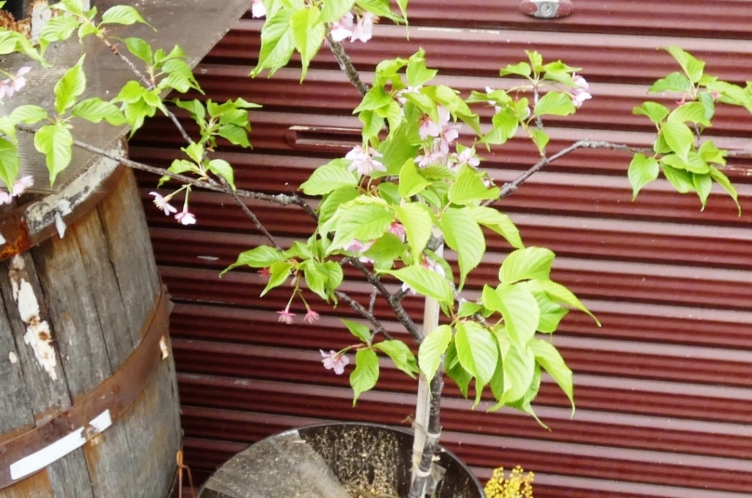 昨日のPUBの店前には鉢植えの河津桜がありました。