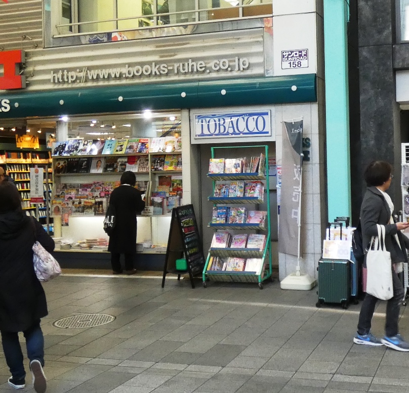 ブックス・ルーエさんの店頭。タバコ販売の窓口の跡がありました。