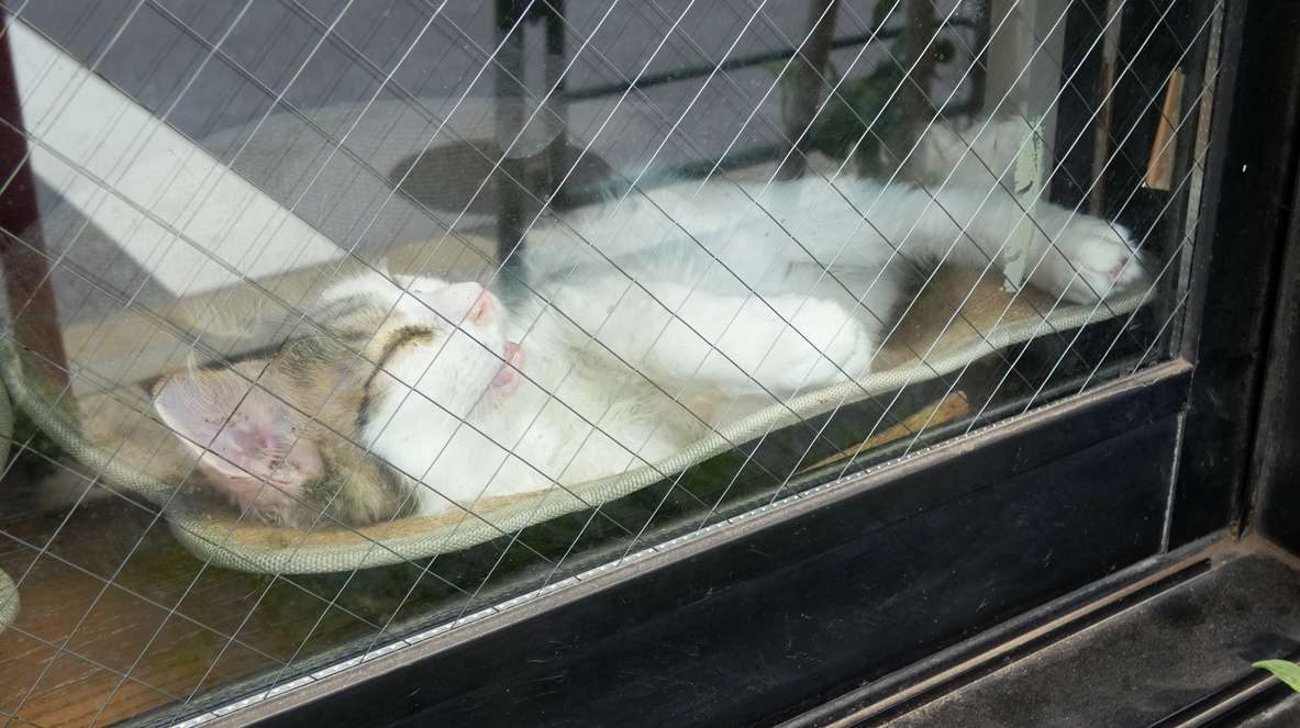 なぜか窓際で爆睡する仔猫さん。クーラーは効いているのかな?
