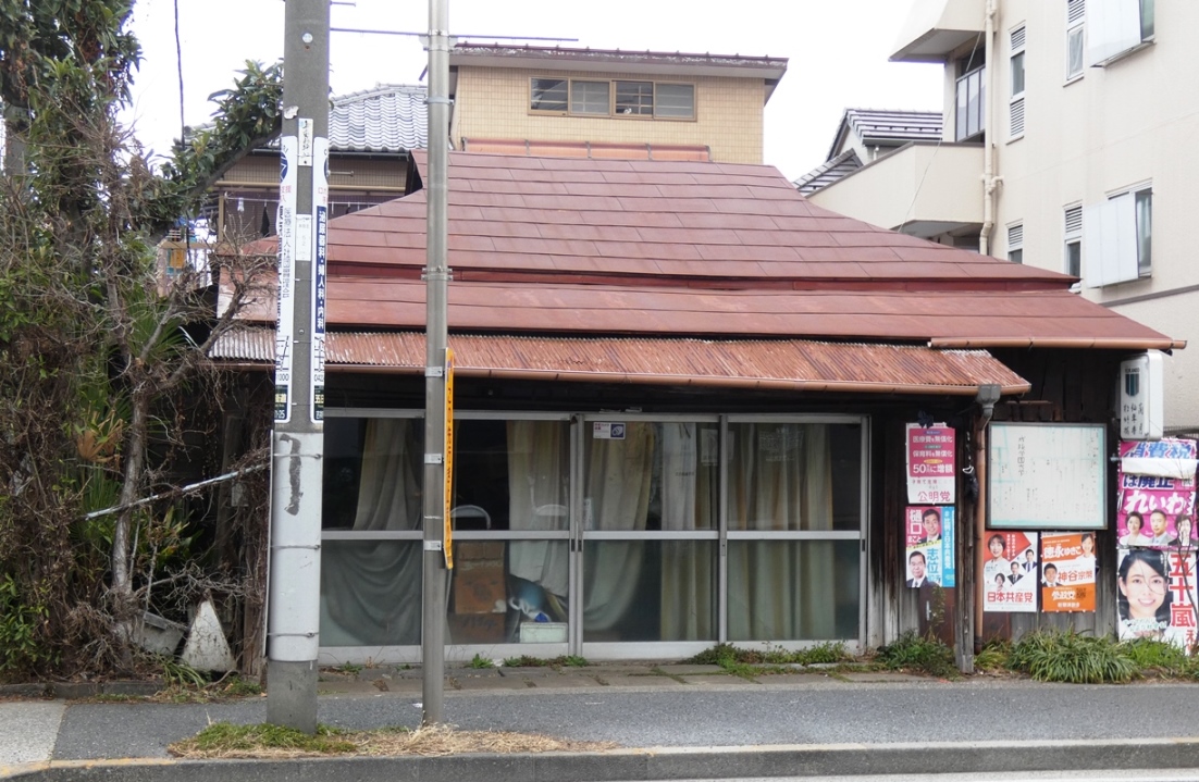 北町1丁目の建物です。ここ本当に昔からこんな感じ。政党のポスターが貼ってある辺りは昔は映画のポスター(おそらく日活だったように思う)が貼ってありました。